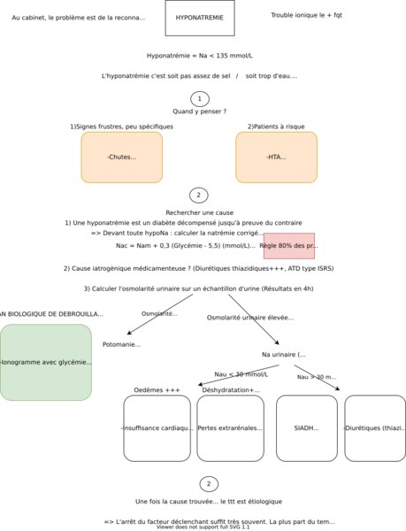 Hyponatrémie => vérifier la glycémie si pas d’hyperglycémie, partir sur le fait que l’hyponatrémie est vraie et qu'elle est le reflet d’une hypo-osmolarité donc d’un excès en eau.