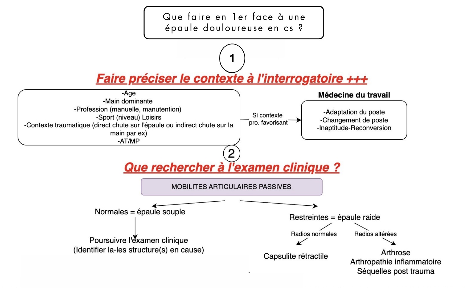 3) Épaule raide à radio normale = Capsulite rétractile (diagnostic d'élimination).