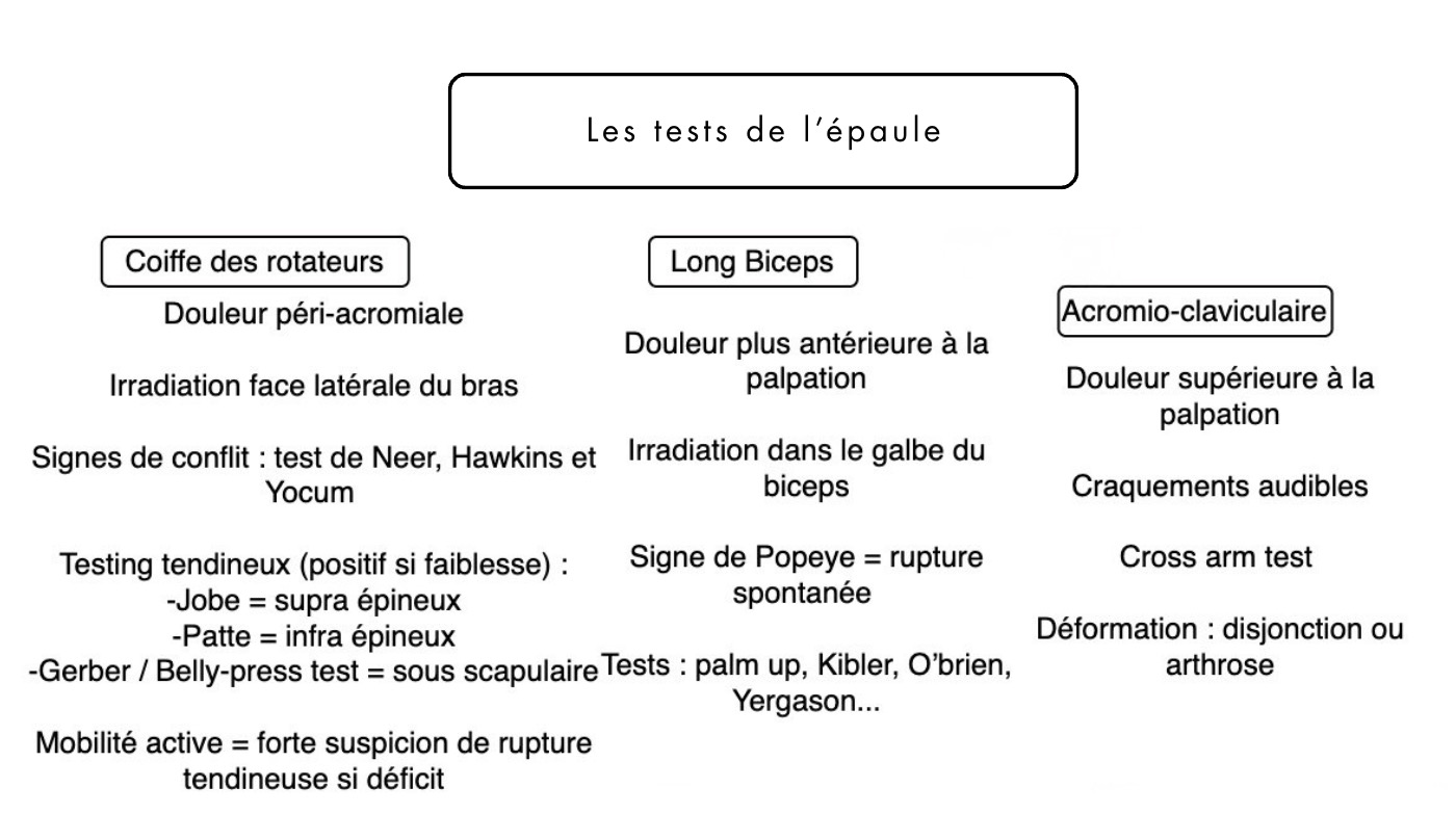 Les tests de l'épaule résumés en une image :