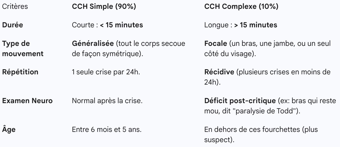 Règle d'or 💎 : Une convulsion fébrile avant l'âge de 6 mois est toujours suspecte. On ne parle pas de "CCH simple" chez un tout-petit de 3 ou 4 mois. C'est direction l'hôpital pour exclure une méningite, car les signes cliniques de méningite sont très frustres à cet âge !