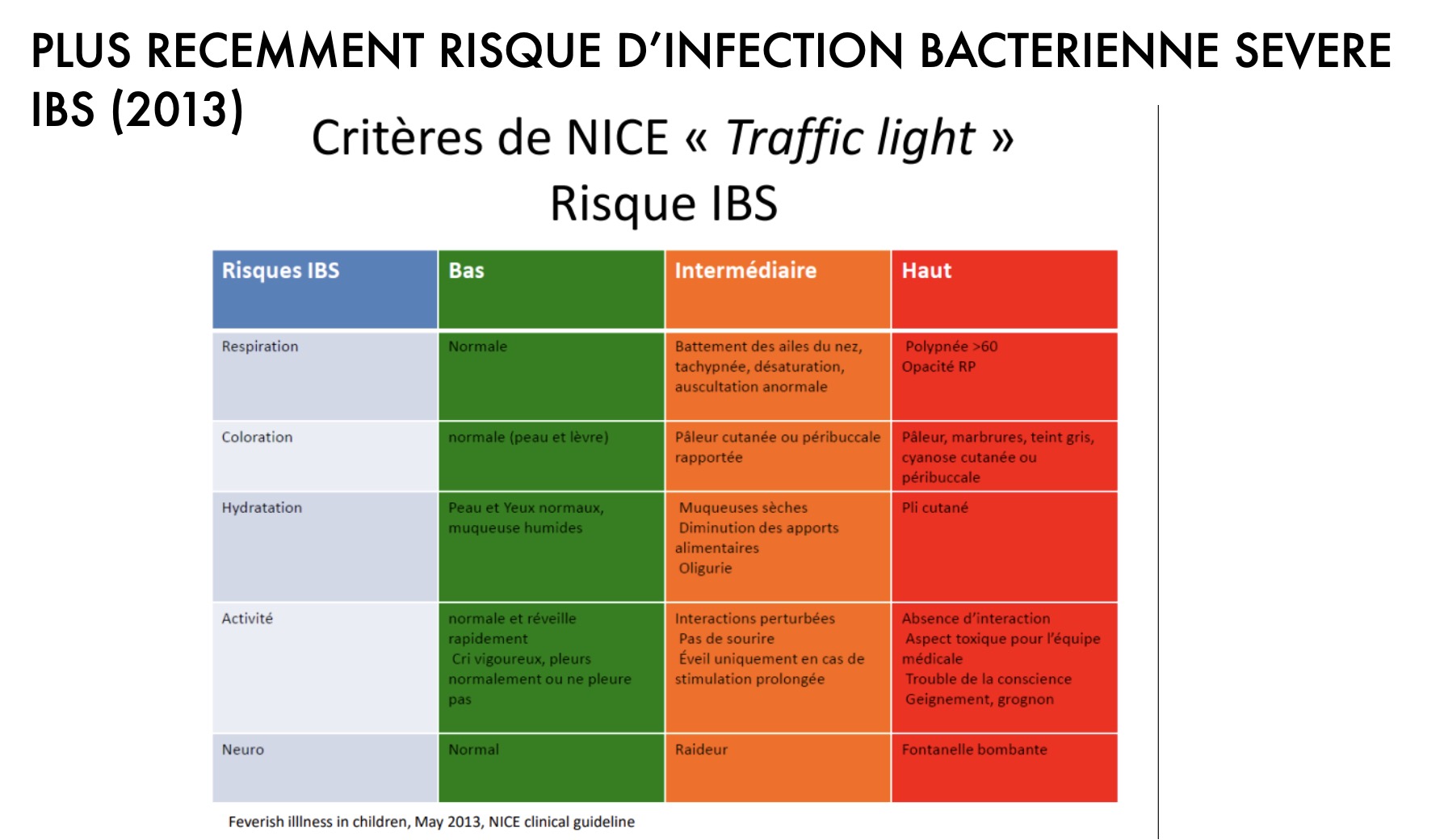 3) Ce n’est pas la fièvre le problème, mais la clinique AUTOUR associée au tableau fébrile (score de Mc CARTHY et tableau IBS)