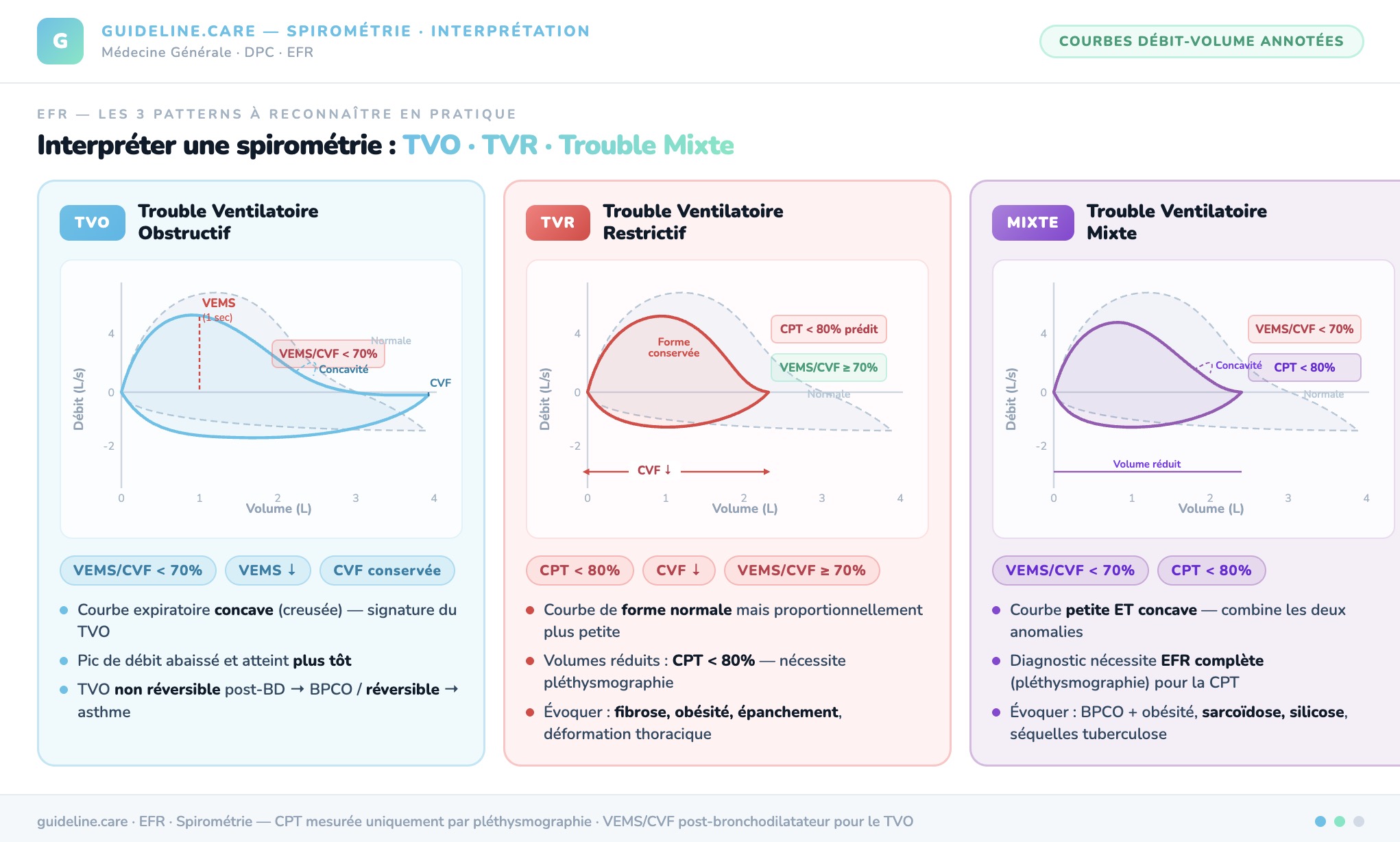 Critère diagnostique : VEMS/CVF post-BD < 70% = TVO.