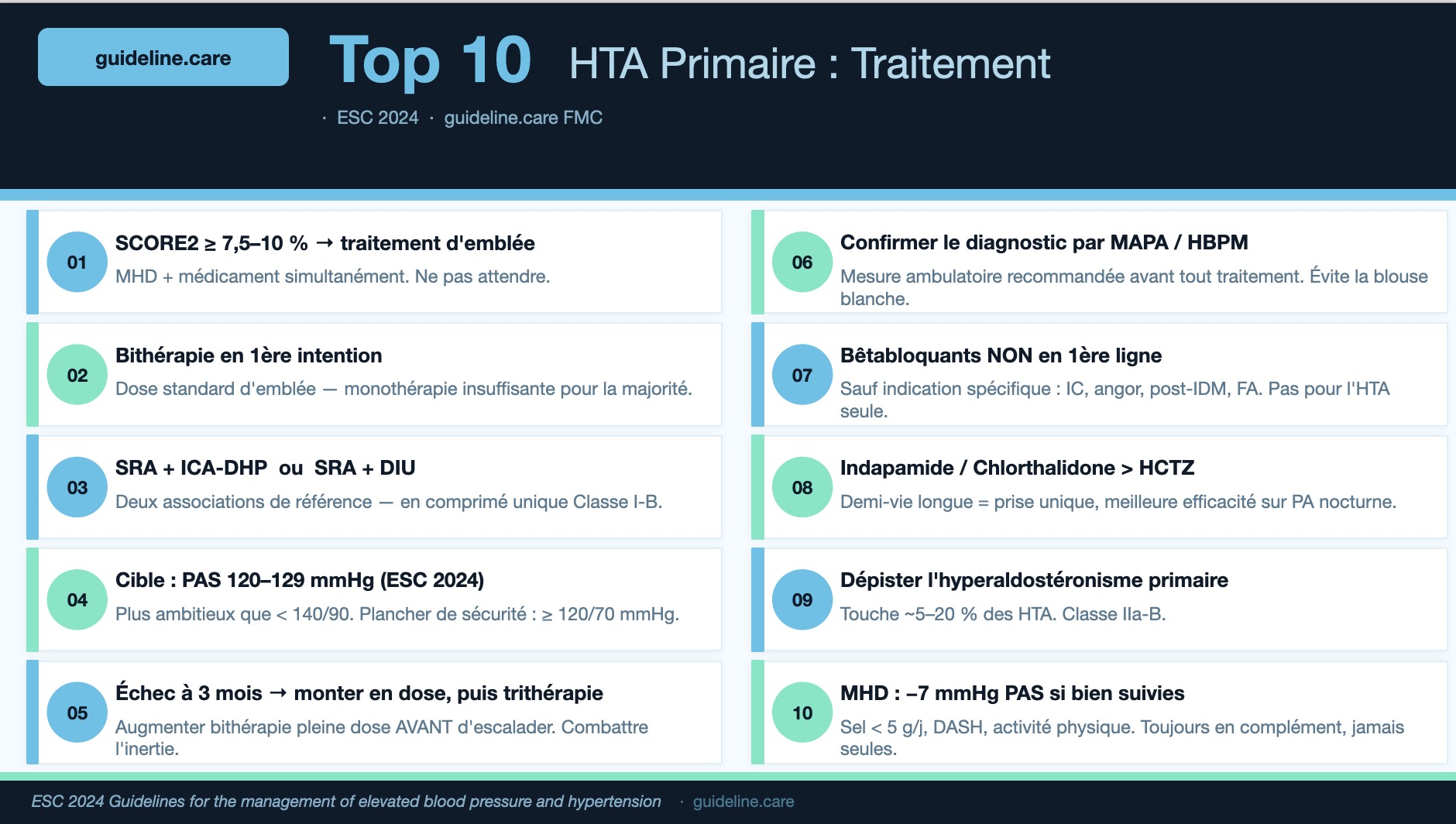 - Une fiche de synthèse sur la prise en charge thérapeutique de l'HTA en MG,