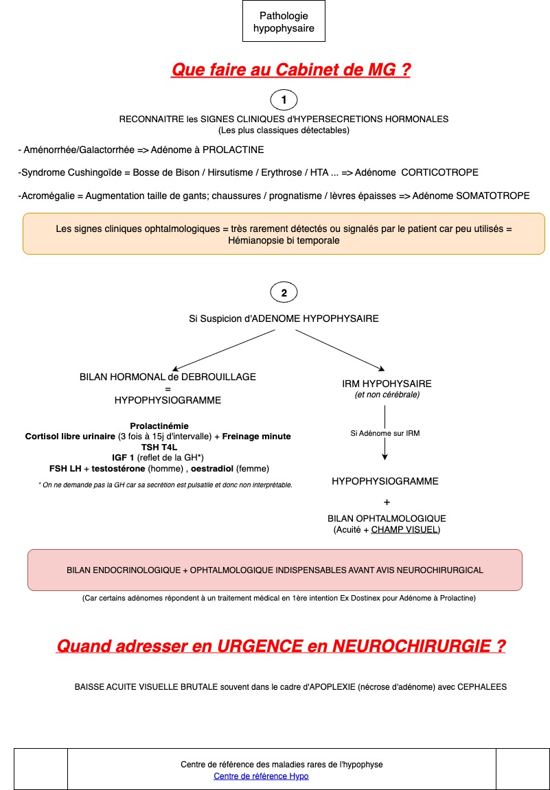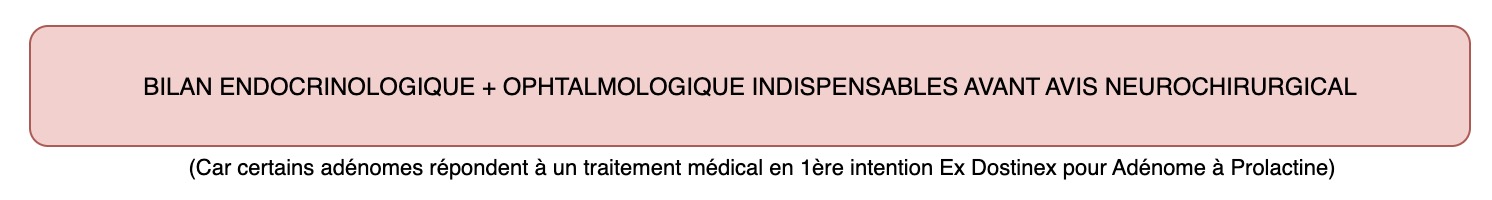 Face à la découverte d'un adénome hypophysaire 👉 n'adressez au neurochirurgien uniquement qu'après un bilan ophtalmologique ET endocrinologique effectués.