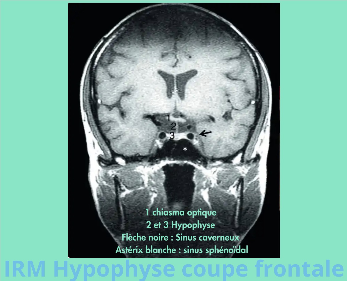 1) IRM hypophysaire en coupe fine (auprès d'un neuroradiologue si possible)