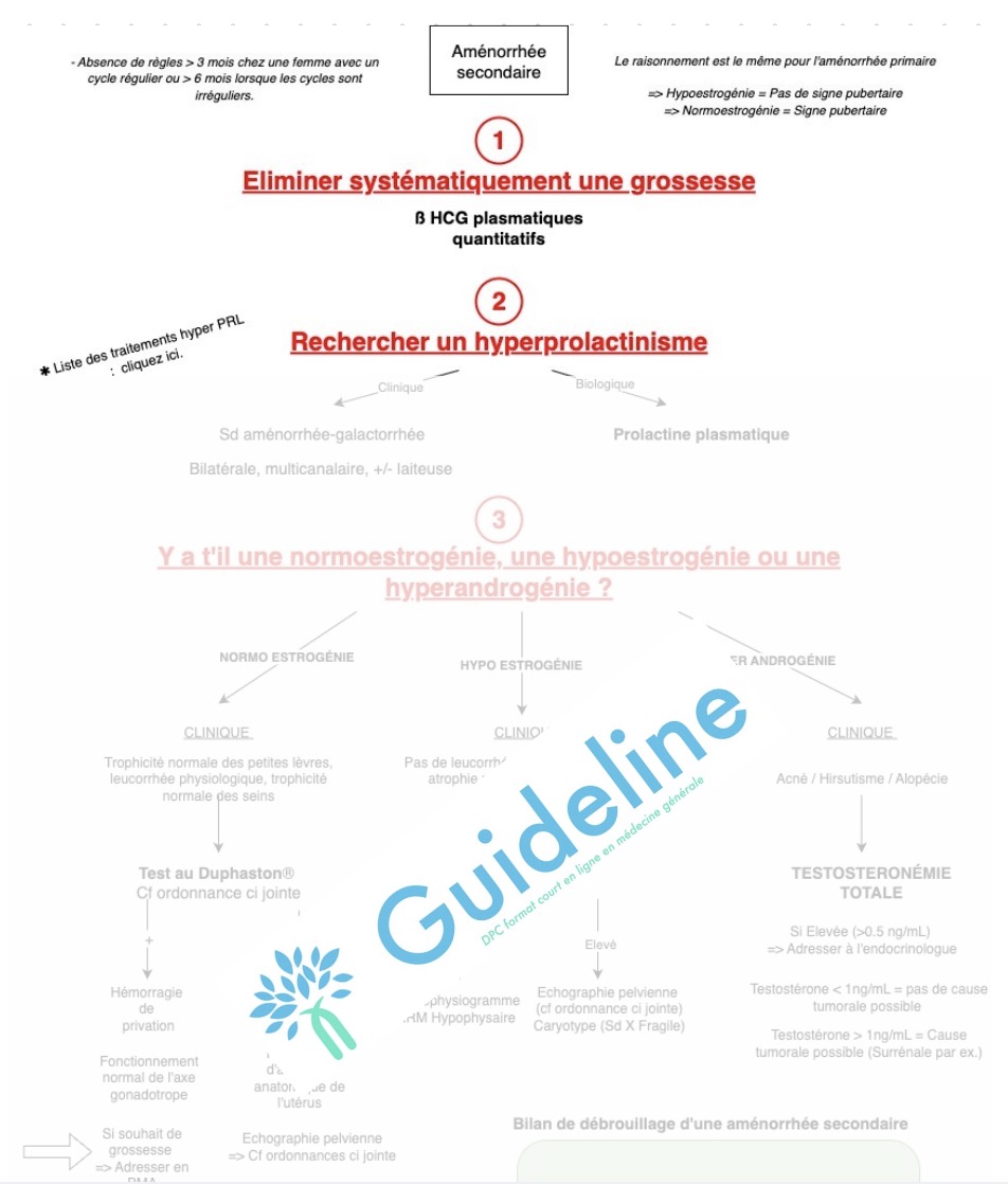 Réponse A : L’installation d’une aménorrhée prématurée témoigne souvent d’une insuffisance gonadotrope. C'est la grande cause d'aménorrhée secondaire ! Pour les abonnés à guideline, vous avez la fiche "Aménorrhée secondaire" disponible avec le bilan à faire détaillé en arbre décisionnel synthétique et les ordonnances type incluses.