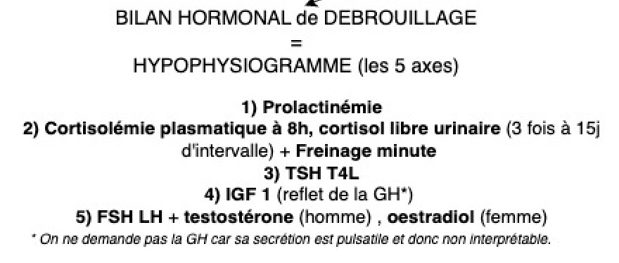 Les commentaires de Pr Weryha sur le bilan endocrinologique de l'hypophyse :